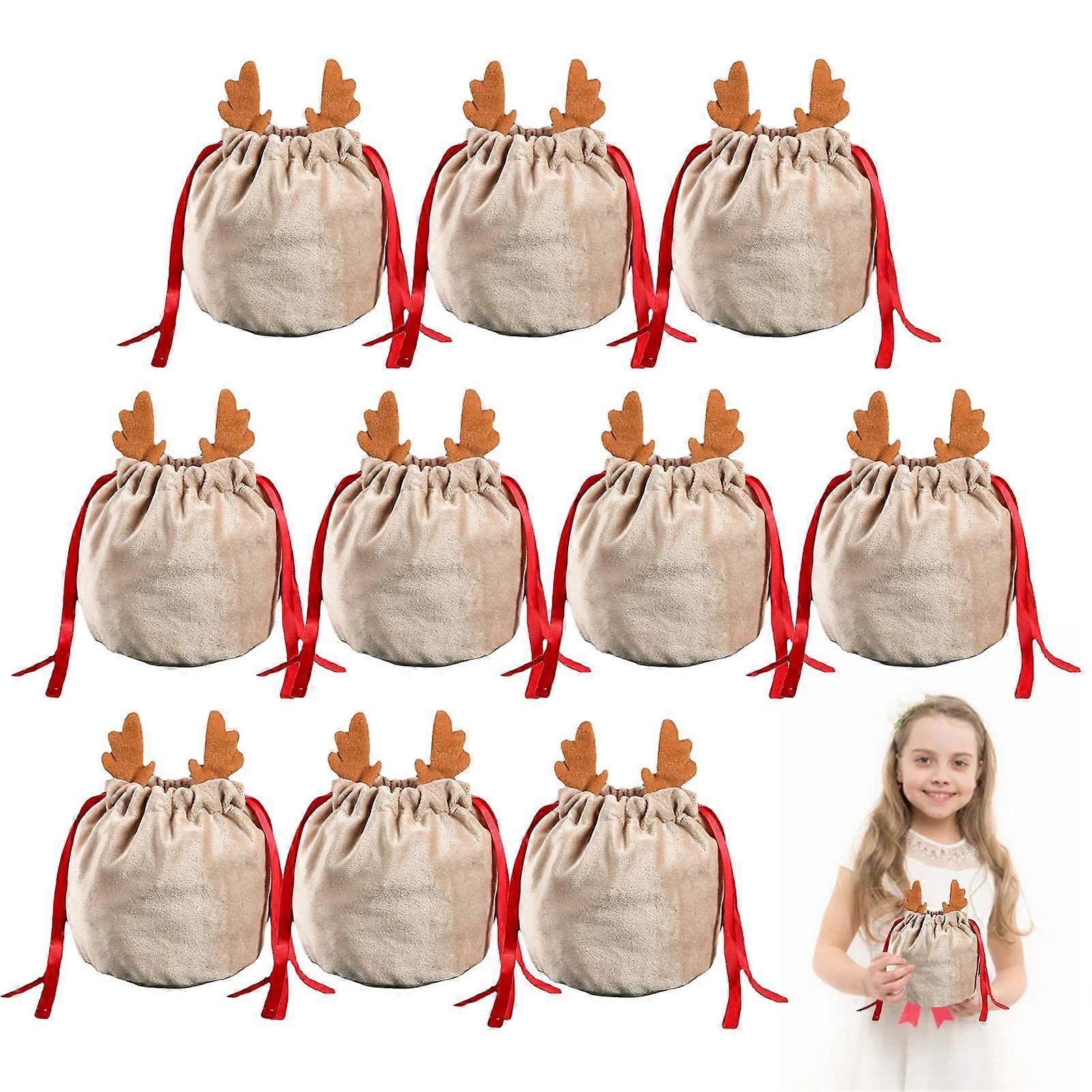 10PCS Christmas Halloween Candy Antlers Bag Velvet Draw String Party Gift Wrap,Reusable Bags Treat Bags for Gift Goodies Candy Snacks