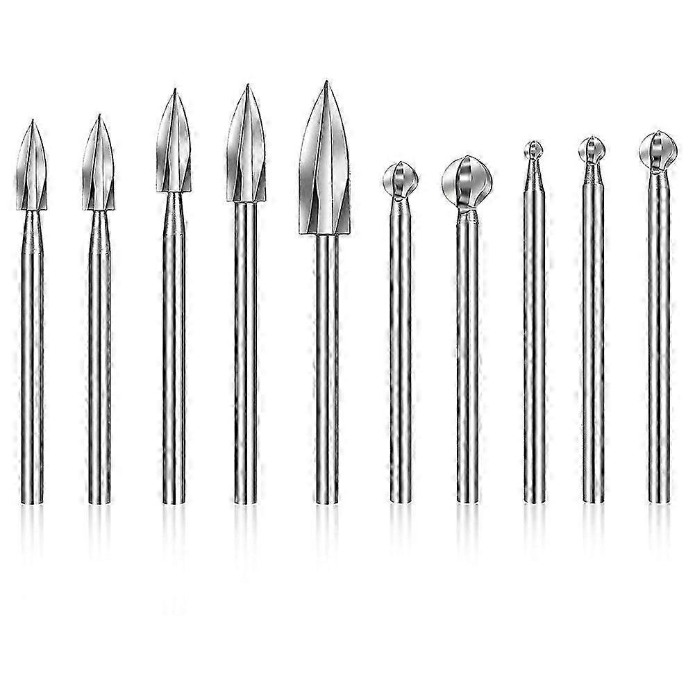 10 Pieces Wood Carving Bits Engraving Drill Accessories Shank Round Nose Cove for Carving Drill Bit for Rotary Tools