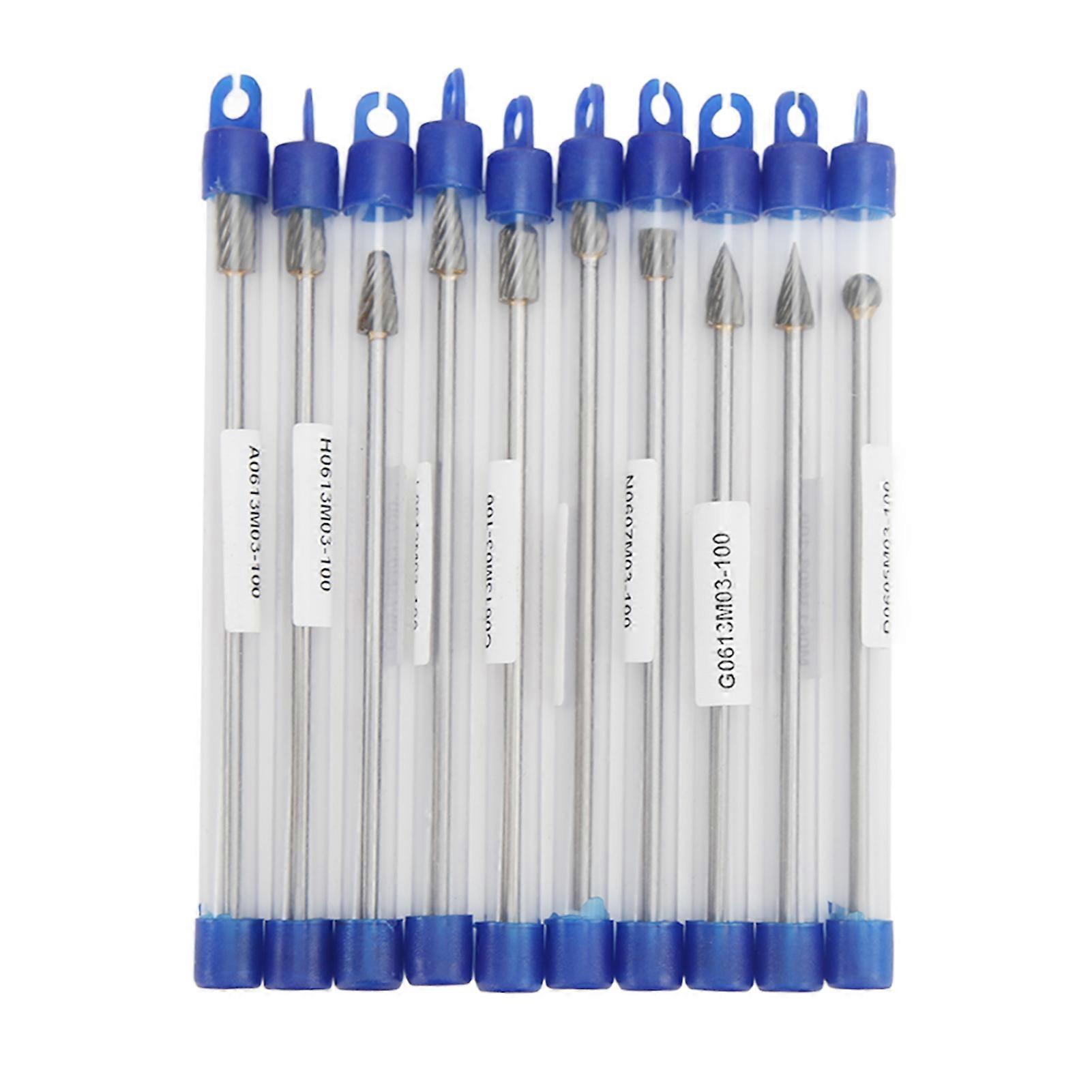 10pcs Carbide Rotary Burr Set 3mm Shank Multifunction Grinding Burr Files for Aviation Automobile Ship