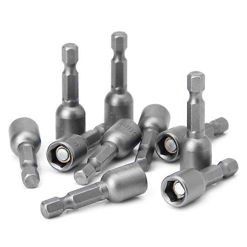 10 Pcs Magnetic Nut Driver Set 8mm 5/16 Socket Adapter Hex Drill Bit