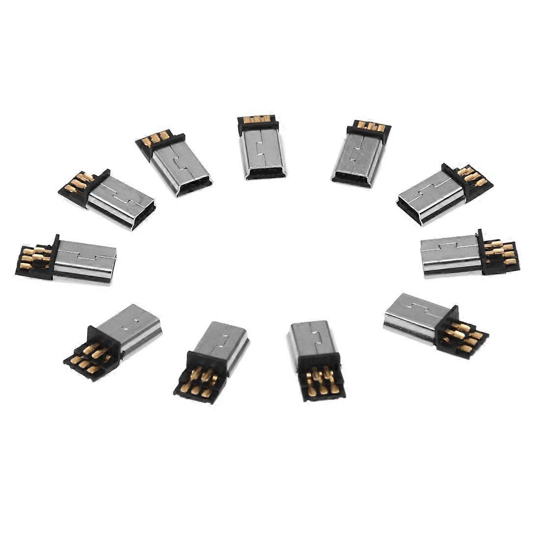 10 Pcs Mini USB 5 Pin Male Plug SMT Connector Silver Tone Dark Gray