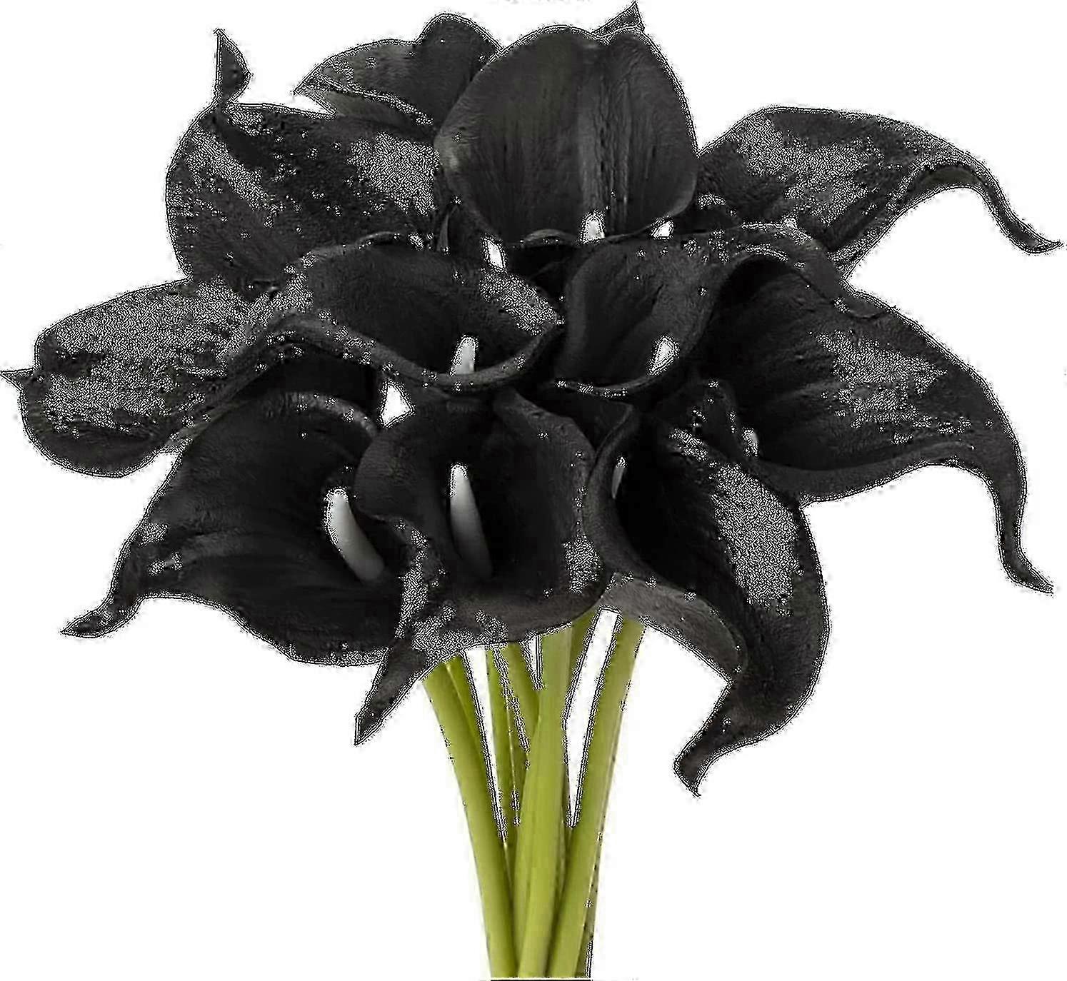 10pcs Artificial Calla Lilies, Real Touch Flowers for Wedding Arrangements, Home Decor, Garden Party (Color: Black)