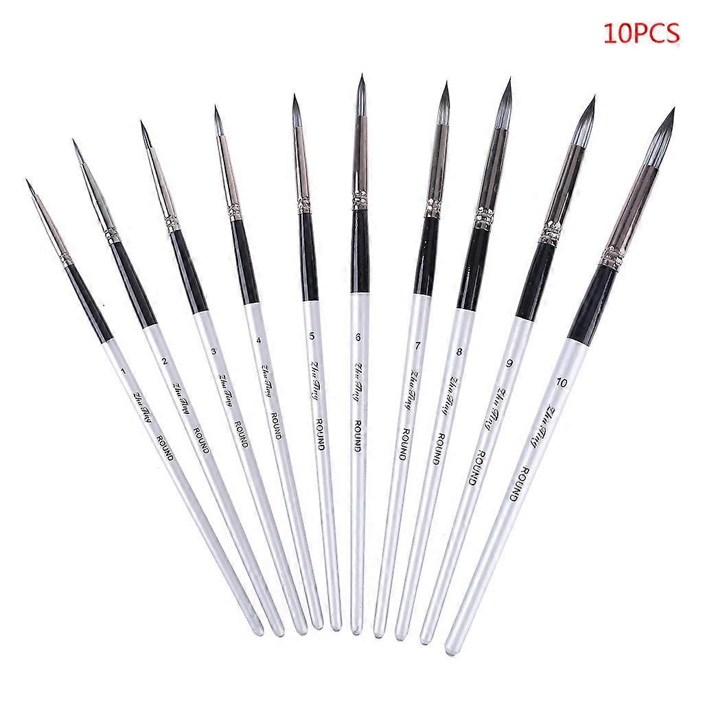 10 Pcs Nylon Hair Watercolor Paint Brushes Long Handle Round Point Tips Painting Brush Pens Set Long Handle Acrylic Pen Black
