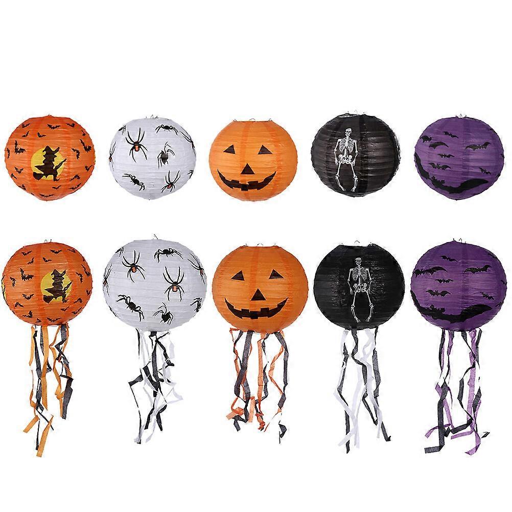 10Pcs Halloween Folding Paper Lanterns Pumpkin Spider Lanterns (Assorted Color)