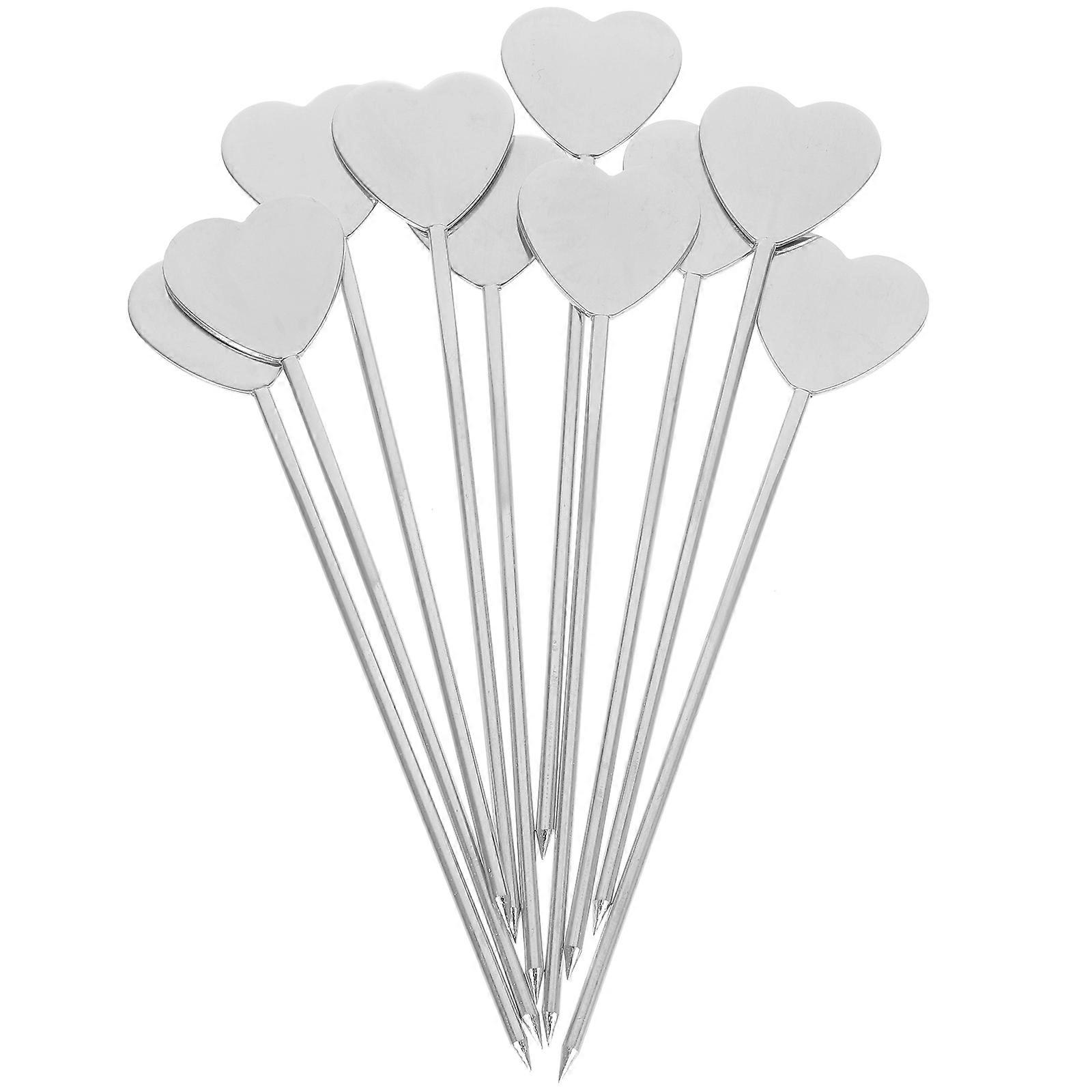 10 Pcs 304 Stainless Steel Food Sticks Reusable Heart Shaped Cocktail Picks Fruit Dessert Picks for Dinner Party BBQ (Silver)