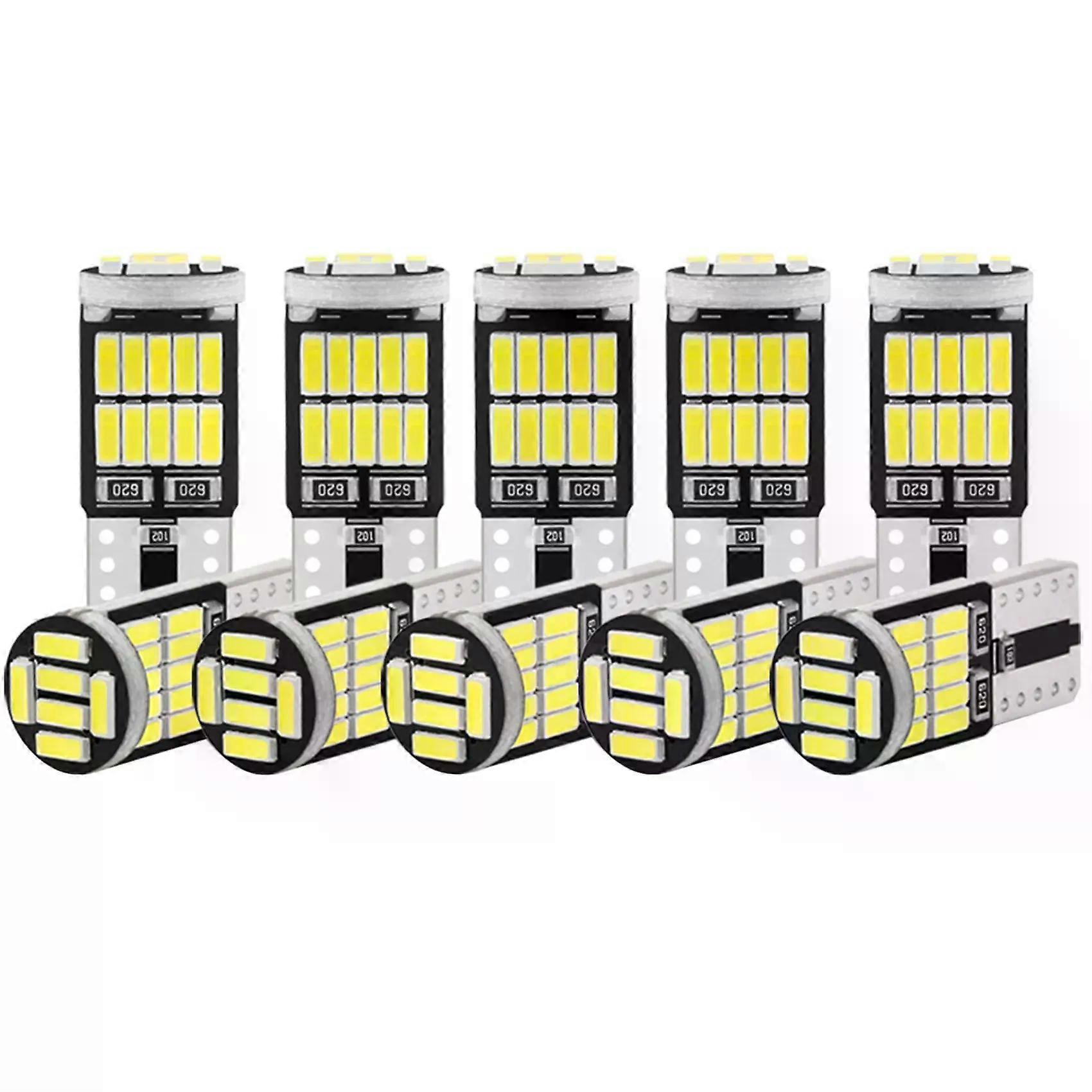 10Pcs W5W T10 LED Bulbs 4014 26SMD Car Interior Dome Roof Lamp License Plate Signal Lamp Tail Box Bulbs 12V White Light