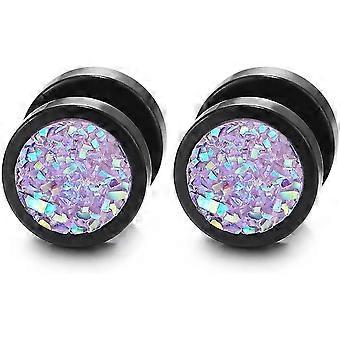 10mm Women Mens Black Circle Stud Earrings Black Glitter, Steel Cheater Fake Ear Plugs Gauges Tunnel