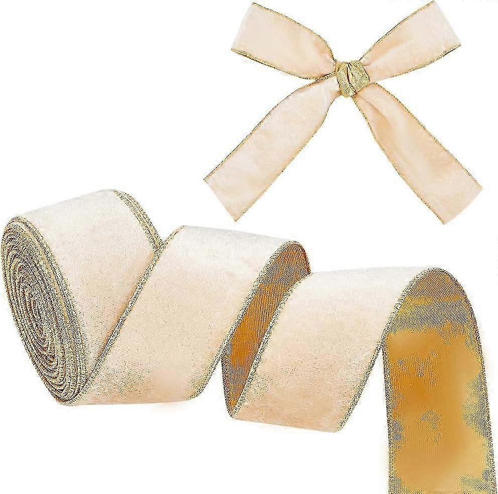 10 Yards Champagne Gold Velvet Wired Ribbon 2.5 inch Wide Single Sided Velvet Fabric Ribbon Trim Gold Edged Velvet Ribbon with Gold back for Gift Wrap