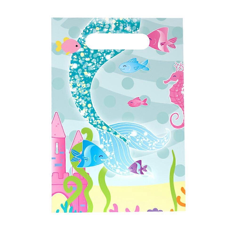 10pcs Cartoon Pattern Gift Bags Plastic Candy Bag Pouch Party Favors for Wedding Birthday (Mermaid)