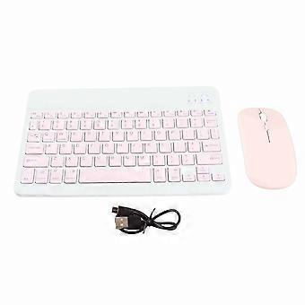 10 Inch Bluetooth Keyboard Set USB Charging Ultra Thin Quiet Wireless Keyboard with DPI Mouse for Mobile Phone Laptop Pink