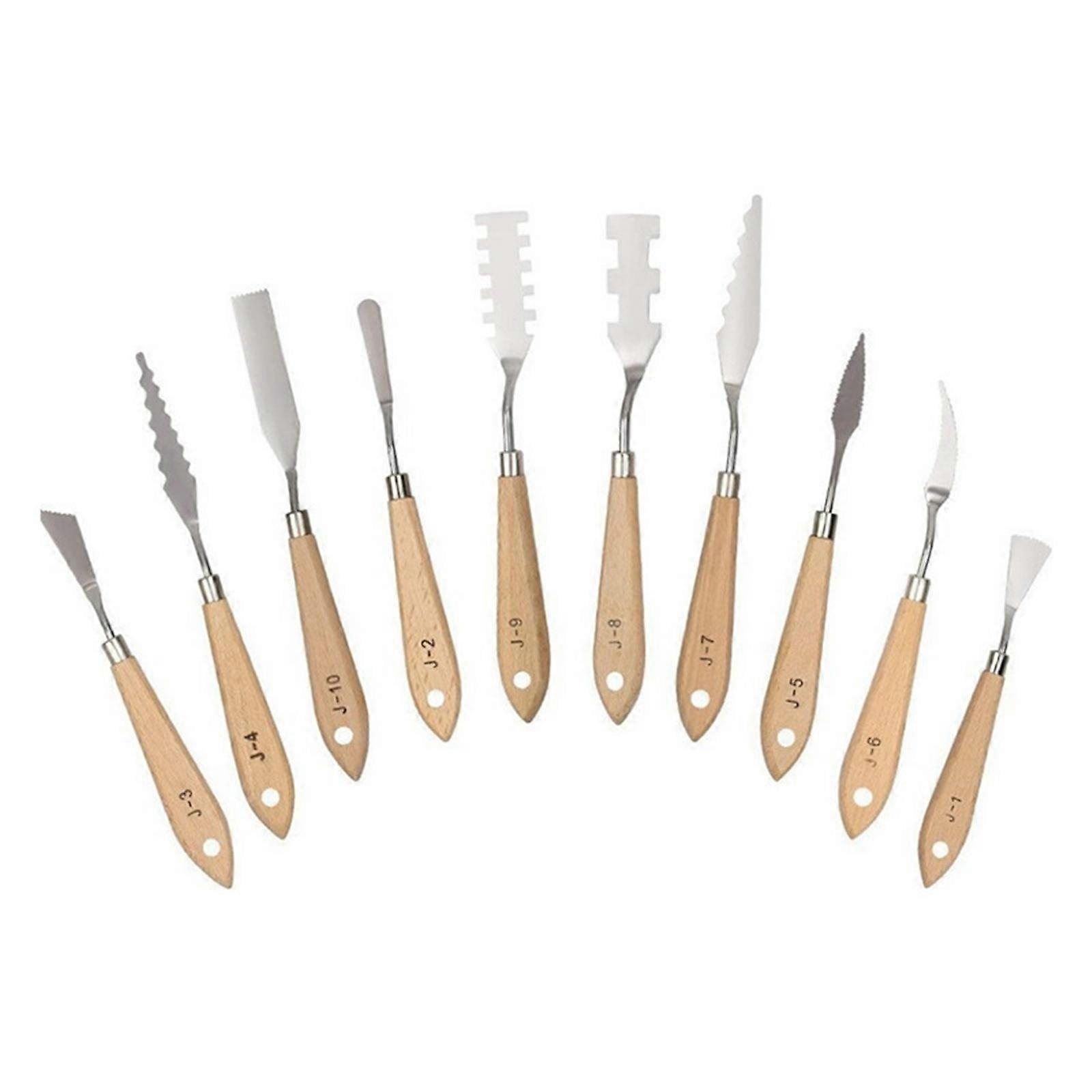 Features: Practical painting scraper set is a choice for artists, enthusiasts, art students and adults. The palette scraper set can be used for ceramics, rock, modeling, and so on. The palette scraper with a smooth, ergonomic handle that is easy to grip and allows effortless mixing of paints. Art painting palette scraper set is suitable for different type of painting and can be used for most painting demands, such as oil painting, watercolour, acrylic, watercolour, and so on. A nice gift choice for family, friend, daughters, son, and sister. Specifications: Component: Wooden+Metal Size: about 5.5x1x19cm/2.17x0.39x7.48'' Package Includes: 10 Pcs/Set Painting scraper Set note: Please allow 1-3cm errors due to manual measurement. Due to the difference betweeen different monitors,the picture may not reflect the actual color of the item.
