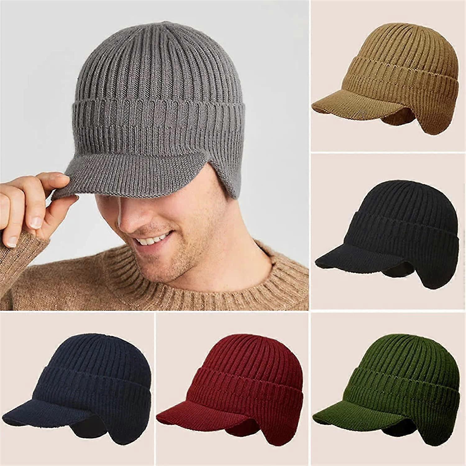100% New,protection Knitted Hat, Men's Fleece Warm Winter Hats With Visor Windproof Ear Flap