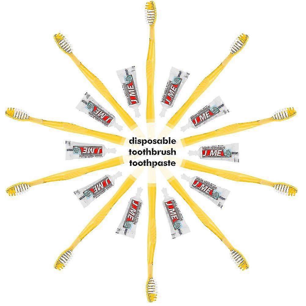 Brand new and High qualityDisposable Toothbrushes With Toothpaste For Camping Travel Festival Ready New Hotel disposable toothbrush toothpaste Kit Inn one dental room supplies Individually Wrapped Disposable wash gargle suit The necessity for travelers.With it, travelers can no longer worry about the dental cleaning problems.And the wash gargle suit can be throw away after being used for once.So it easy and convenient to use the disposable toothbrush toothpaste Kit.Specifications:Material:PlasticWeight: 9gSize:21x3cmColor: as the picture showsSpecifications:For Camping Travel Festival Ready NewPlastic MaterialDisposable dental roomeasy to carrysuitable for travelertraveling suitPackage Included:1x Toothbrush1x ToothpasteNotes:Due to the different monitor and light effect, the actual color of the item might be slightly different from the color showed on the pictures.Due to the manual measurement and different measurement methods, please allow 1-3cm deviation.Thanksforyourunderstandings.