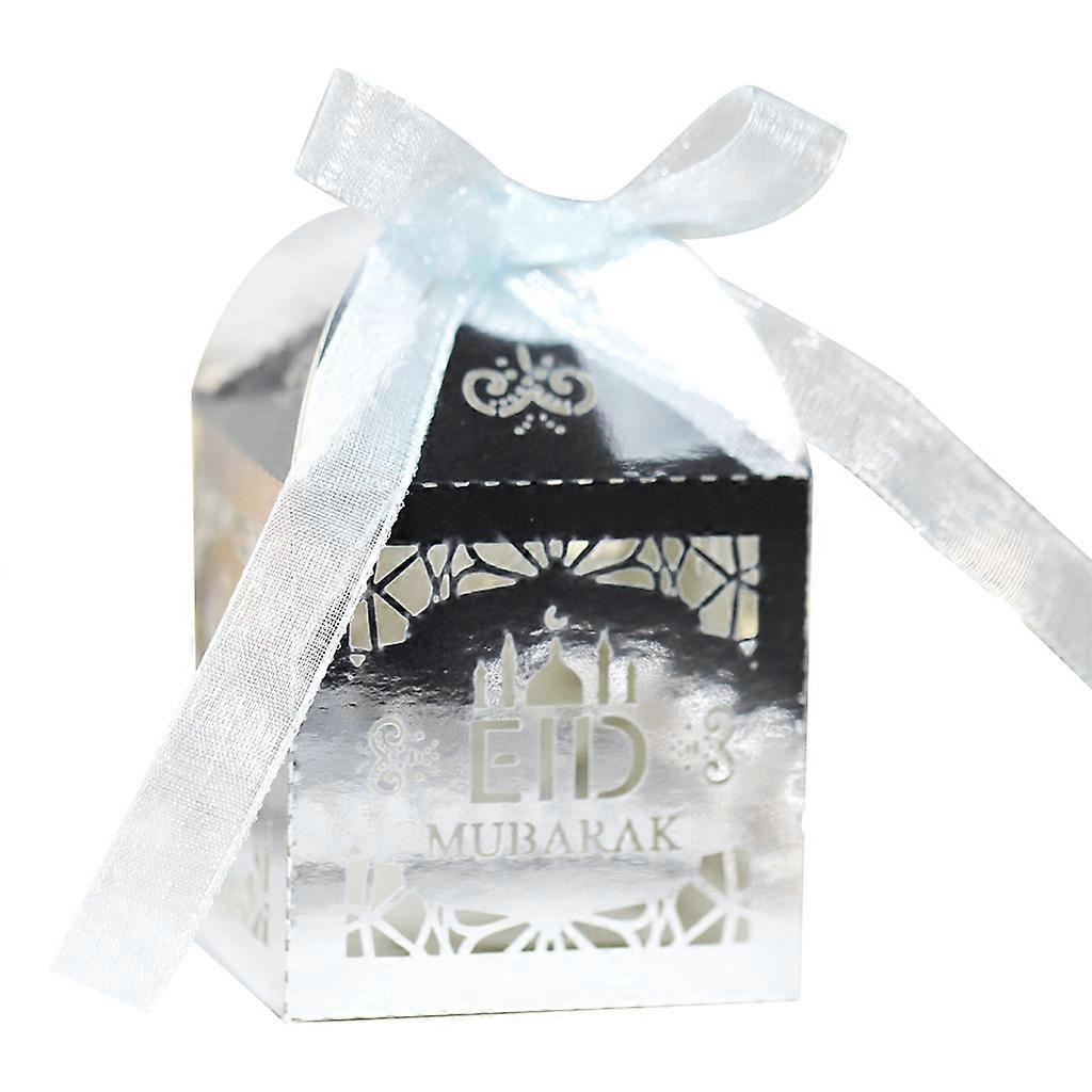 100pcs Eid Paper Candy Box Ramadan Decoration Mubarak Hollow Cut Gift Boxes Islamic Muslim Party Supplies