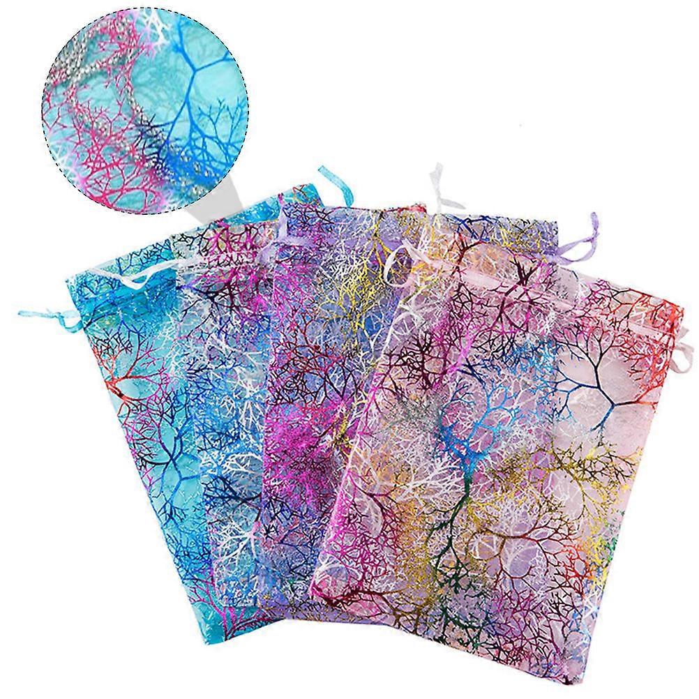 100pcs Christmas Drawstring Candy Bags Mixed Color Organza Gift Pouches Durable Party Bags For Holiday Celebration Diy Packaging