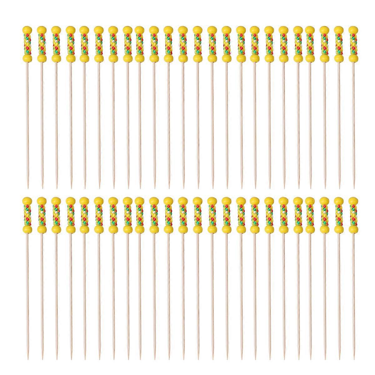 100pcs Beautiful Double Bead Shape Design Picks Creative Disposable Fruit Food Picks Decorative Cocktail Drink Picks Handy Bamboo Forks for Party Supp