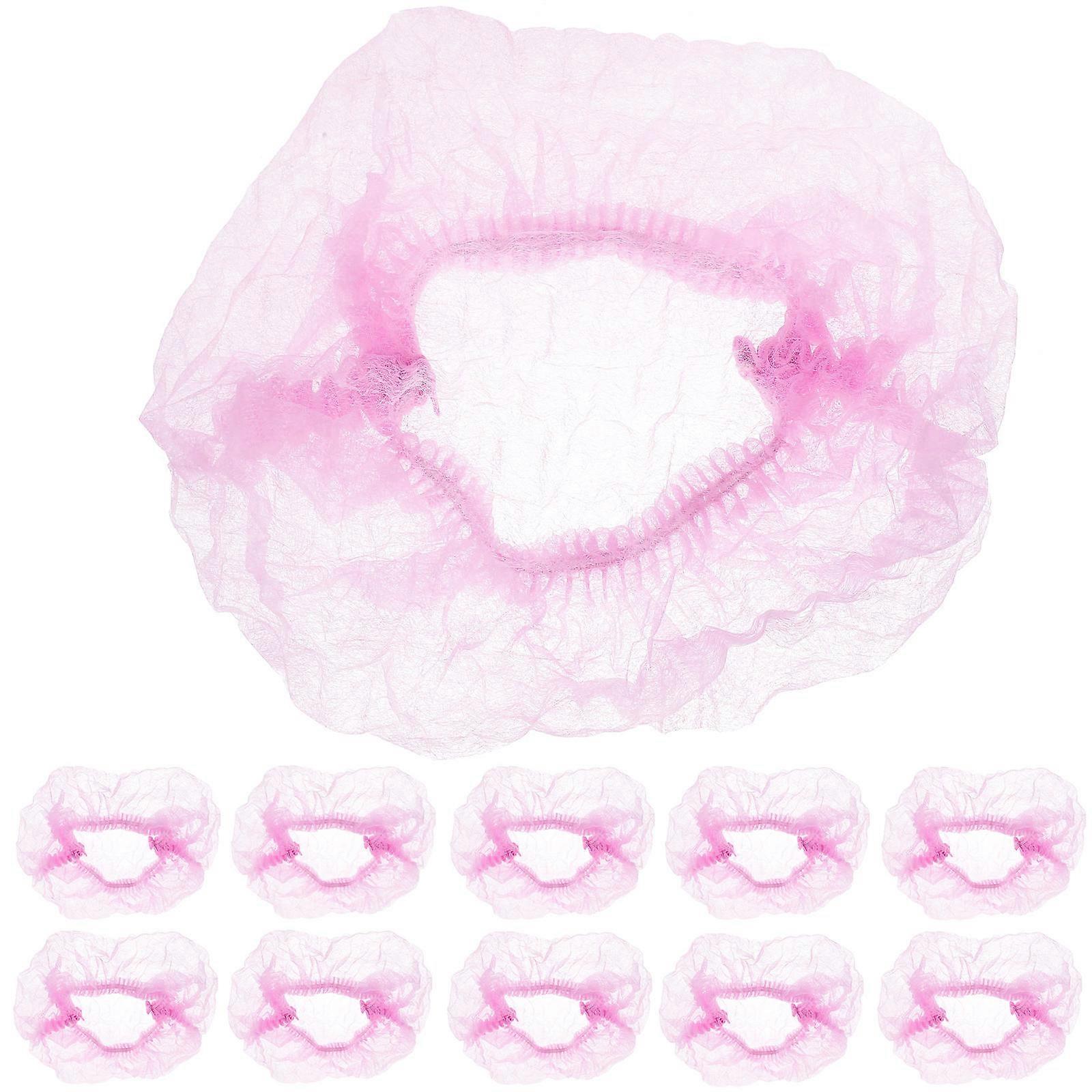 100pcs Pink Disposable Non woven Bouffant Caps for Food Baking and Makeup