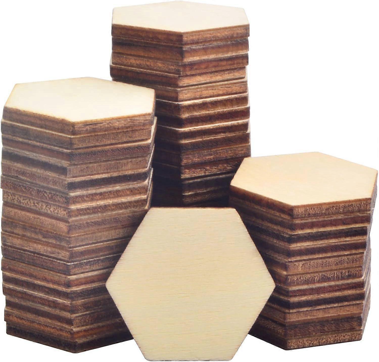 100pcs Unfinished Blank Wood Pieces Natural Hexagon Wooden Slices Cutouts for DIY Crafts Painting Staining Burning Engraving Coasters Beige