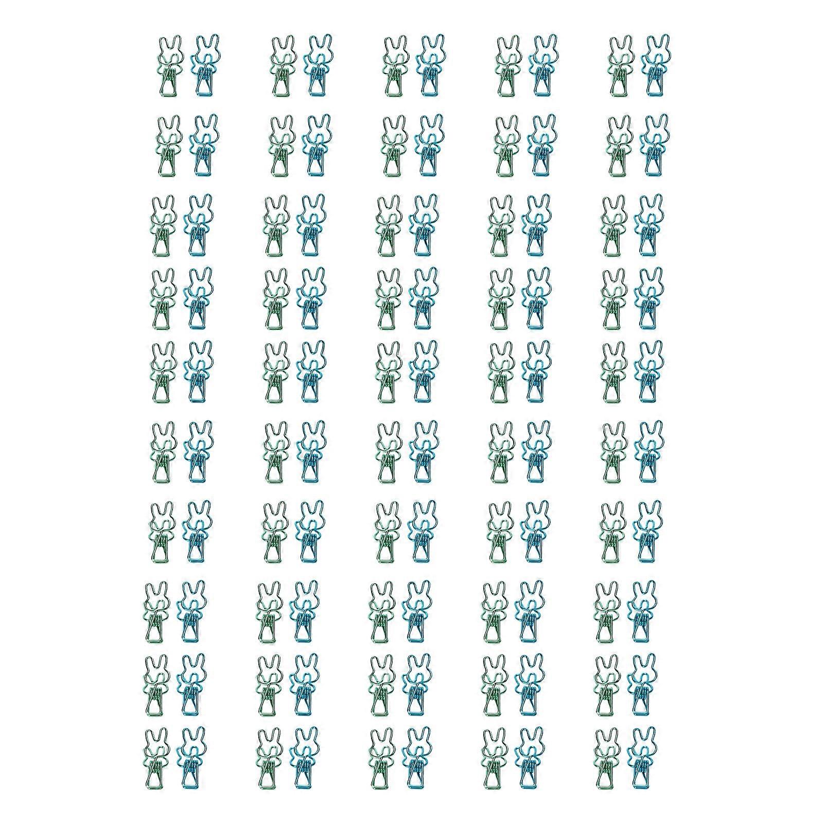 100 Pcs Cute Binder Clips Multipurpose Cartoon Rabbit Shape Blue Green Paper Clamps for Home School Office