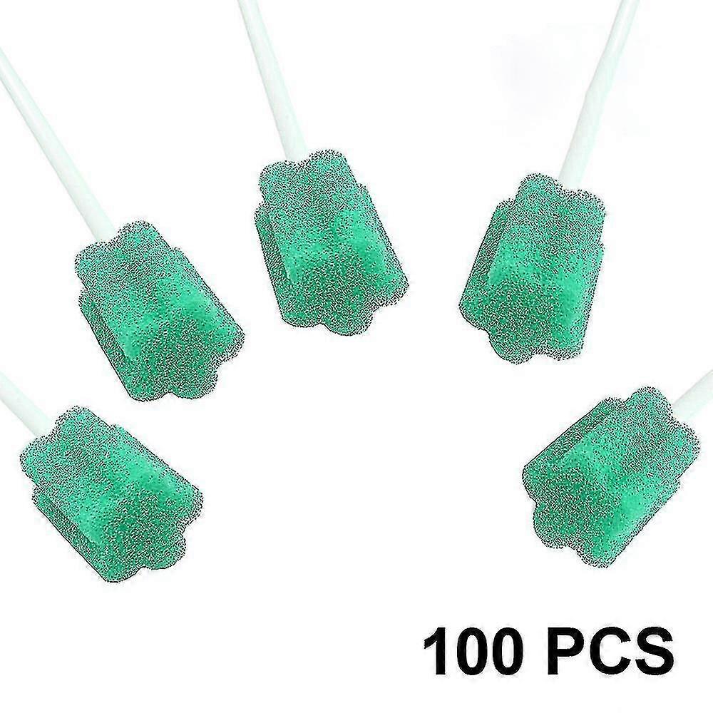 100pcs Disposable Oral Swabs - Untreated Mouth Sponge, Green