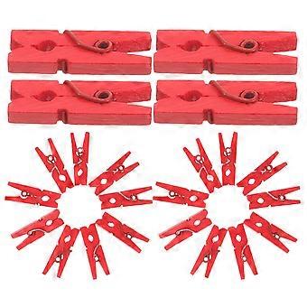 100pcs Mini Natural Wooden Clips Heavy Duty Utility Clothespins for Photo Hanging Craft Decorations Red