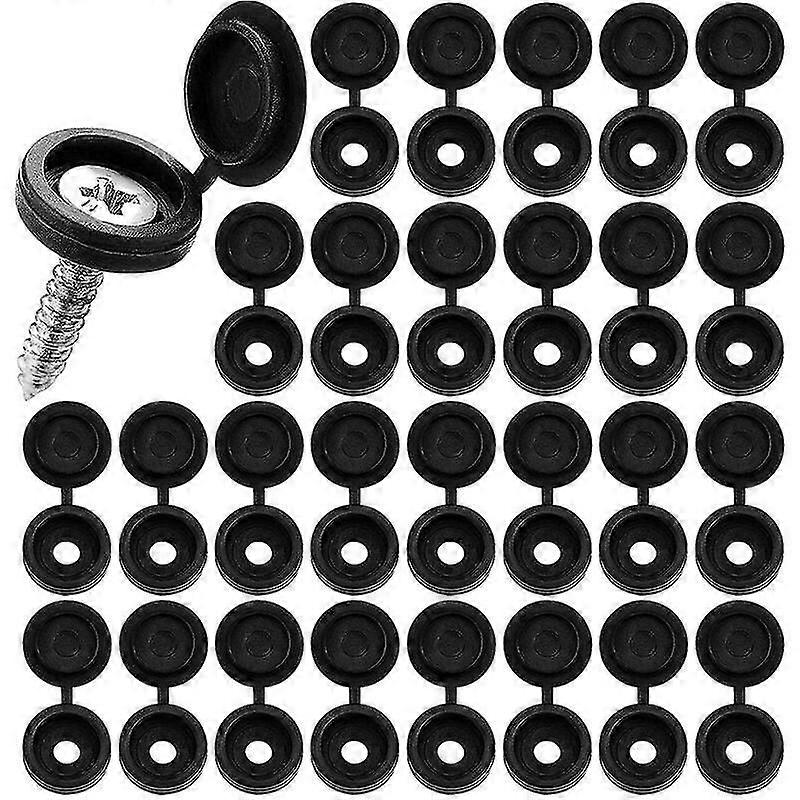 100Pcs Screw Covers Plastic Screw Caps Hinged Screw Cover Caps with Box for 5mm Screws for Hiding Screw Cross Head and Decorating Furniture(Black)