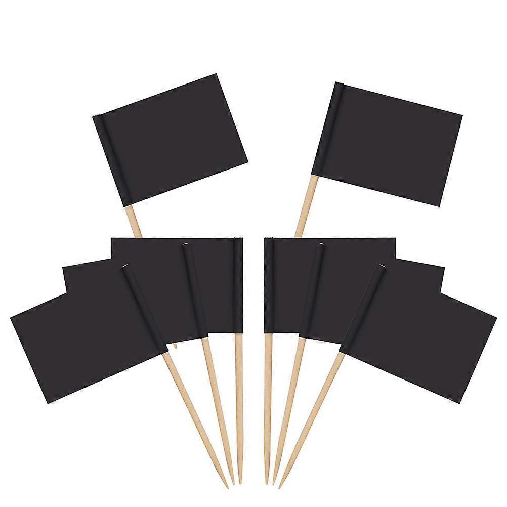 100pcs/1 Set Blank Flag Design Cake Toppers Creative Cake Fruit Picks Cupcake Insert Decor Toothpick Party Supplies (Black)