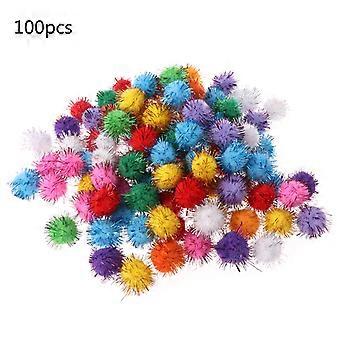100Pcs 25mm Mini Fluffy Soft Pom Poms Pompoms Glitter Ball Handmade Kids Toys DI
