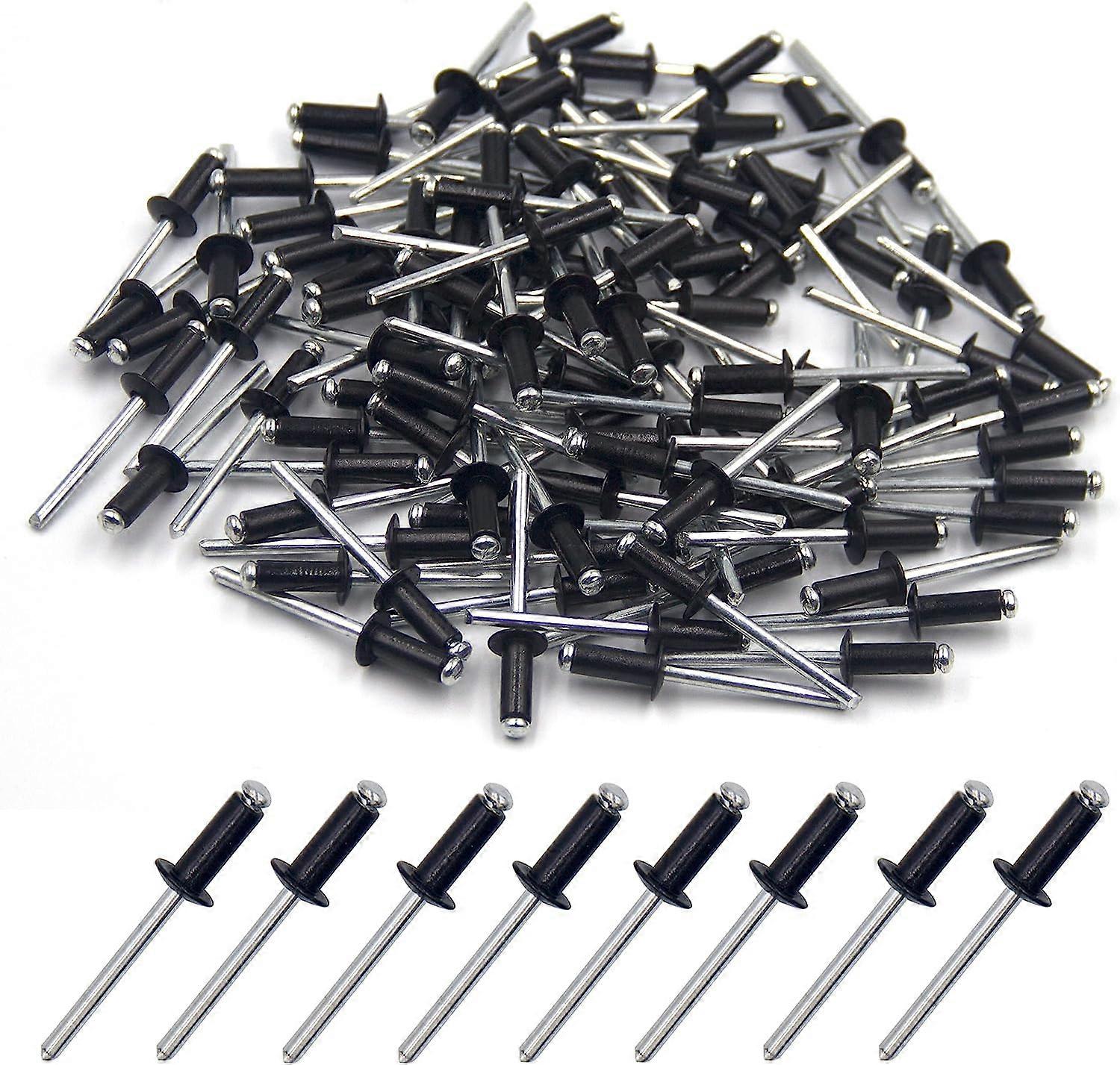 100 Pieces 4.8 x 12mm Aluminum Blind Rivets, Open End Rivets, Pop Rivets, Pack of 100 (Black)