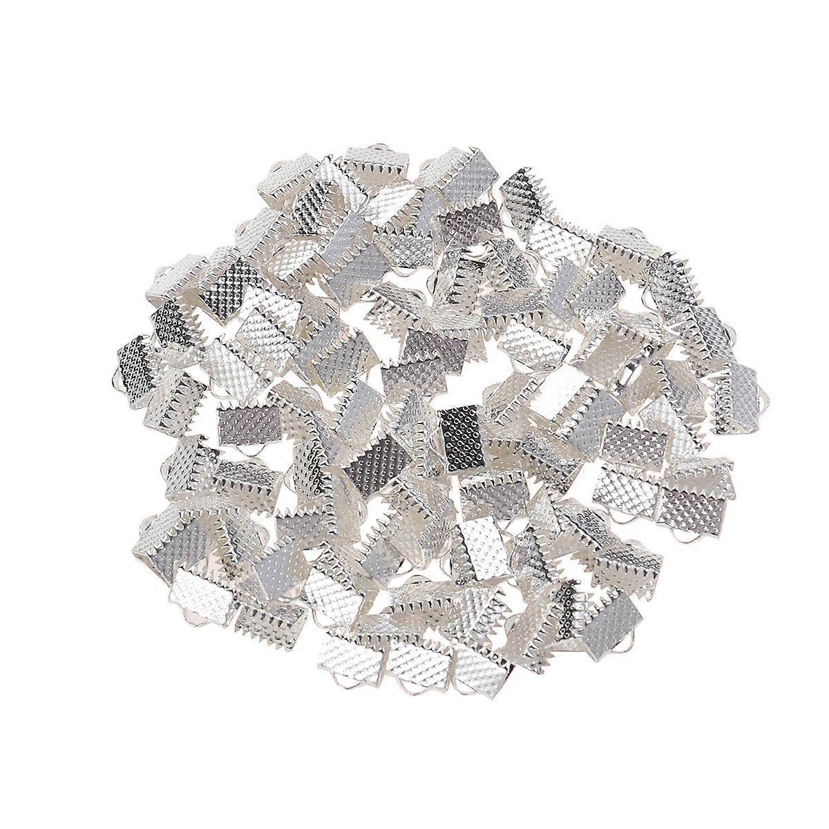 Description Easy to use, use flat nose pliers to close the ribbon crimps and they will hold your ribbon and/or cording in place with their internal teeth and hide frayed ribbon ends. Use the loop to attach clasps, jumpring or other findings. Suitable for such jewelry makings as choker, necklaces, bracelet. Feature - Color: Silver. - Material: Metal. - Size: 0.8x0.5x0.5cm. - Easy to use, use flat nose pliers to close the ribbon crimps and they will hold your ribbon and/or cording in place with their internal teeth and hide frayed ribbon ends. - Use the loop to attach clasps, jumpring or other findings. - Suitable for such jewelry makings as choker, necklaces, bracelet. - Widely used on ribbon, lace, leather flat cords and bookmark ends, arts, crafts, DIY and so on.Package list: 100 x Buckles