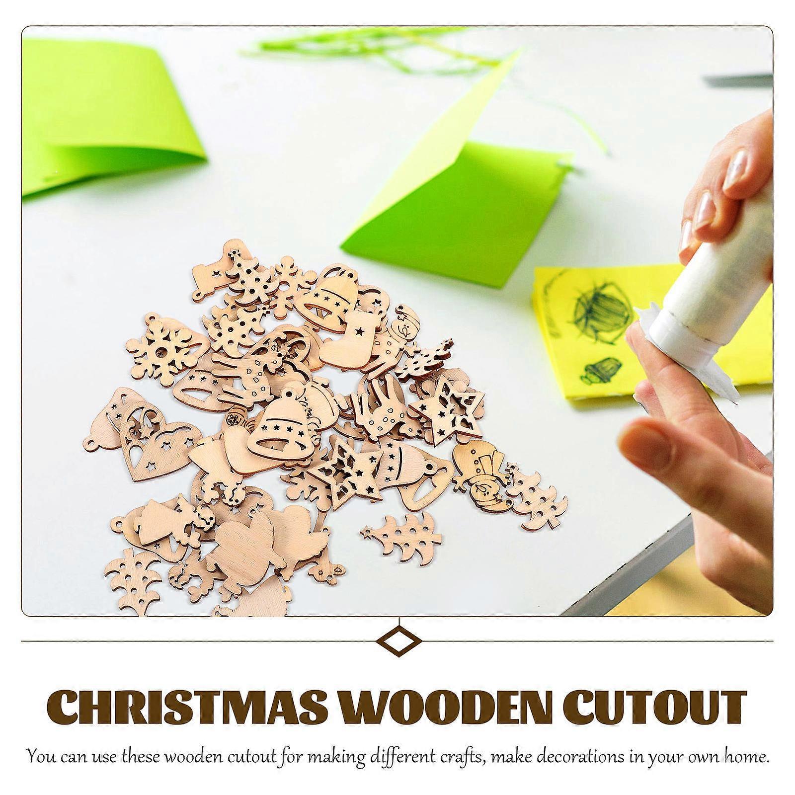 100pcs Christmas Wooden Cutouts Wood Slices Xmas Wood Cutouts Mixed Style