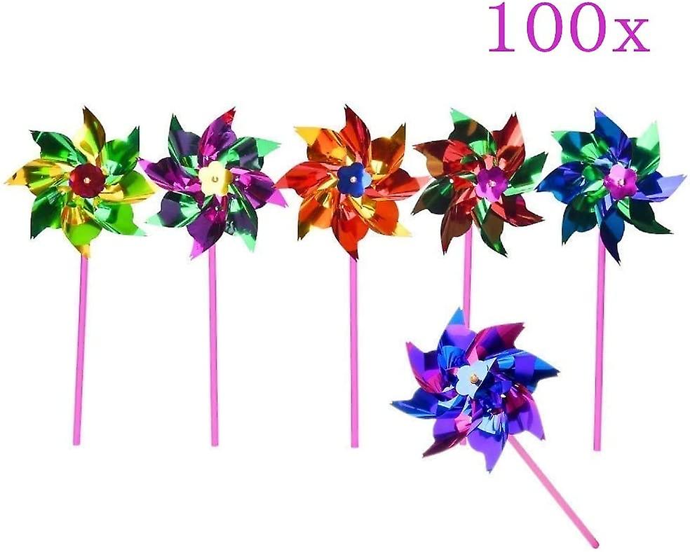 100 Waterproof Foil Windmills Outdoor Toys for Kids Garden Decoration Ornament Pinwheel Spinners for
