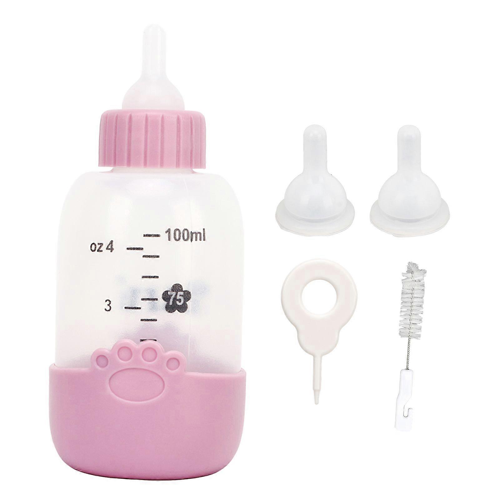 100ml Pet Nursing Bottle Universal Paw Pattern Silicone Pet Milk Feeding Bottle Kit for Puppy Cat Pink