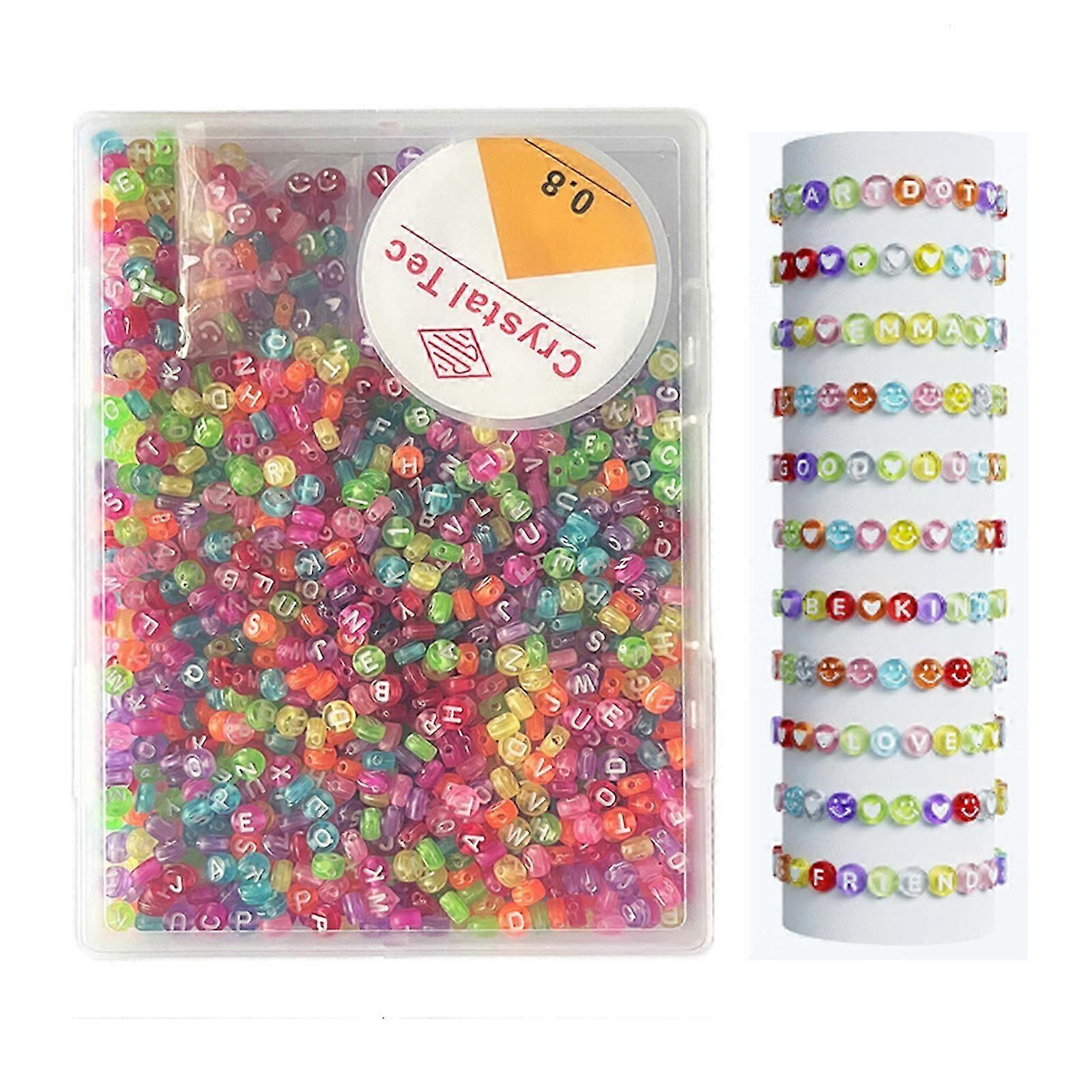 1000 Pcs Letter Beads, Round Alphabet Beads Friendship Bracelet Making Kit, Colorful Smile Heart Beads Bracelets