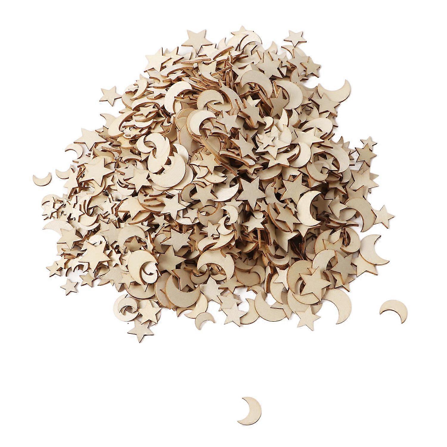 1000Pcs Wood Moon Star Cutout Slices Unfinished Star and Moon Shape Wood Cutouts for DIY Craft