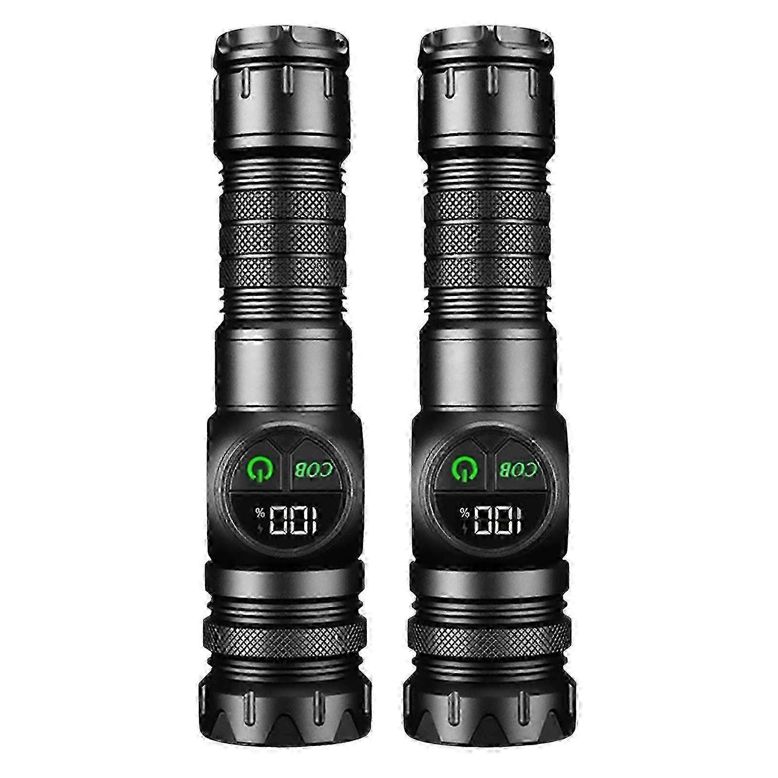Features: Zoomable-Focus: The flashlight head is adjustable, and you can choose the size of the beam-focus by pushing and pulling the head. 2 Light Sources and 9 Modes: LED flashlights is designed with 2 light sources and 9 modes. The main light has 5 modes: high or medium or low or flash or SOS, and the COBs side light has 4 modes: high yellow light or low yellow light or red light or red light flashing. The main light and COBs side light have their own buttons.  USB C Fast Charging Input and Mobile Power: High-lumen flashlight has a built-in battery and a USB C fast charge input interface. In addition, the flashlight is equipped with a USB output interface, which is suitable for various USB charging devices and can be used as a mobile power supply. Digital Power Display: Rechargeable flashlights is designed with a digital power display, so you can accurately grasp the remaining power of the flashlight at any time and make better use of the flashlight. Powerful Magnetic Base: The flashlight is made of high-strength aluminum alloy, which is anti-fall and anti-shatter, and can be used as an emergency window breaker in an emergency. In addition, the magnetic base at the bottom of the flashlight is easily adsorbed on any metal surfaces, making your use experience even better. Application: Compact and lightweight, making it an essential tool for camping, hiking, emergencies, and everyday use Description: Material: Aluminum Alloy Switch: Dual-push switch (main light switch and COBs switch) Charging Method: USB Type C Supported Output: Main light switch: High light - Medium light - Low light - SOS - Fast flash Power level: Yellow high light - Yellow low light - Red light - Red flash Zoom: Telescopic zoom Waterproof rating: IPX4 Battery capacity: 1200 mAh Lu-men or Range: 1000-2000lm, 800-1200 m Includes: Flashlight and Type-C cable and lanyard and box Package List: 1 or 2 or 3pcs Rechargeable Flashlight Note: Due to the light and screen setting difference, the item's color may be slightly different from the pictures. Please allow slight dimension difference due to different manual measurement.