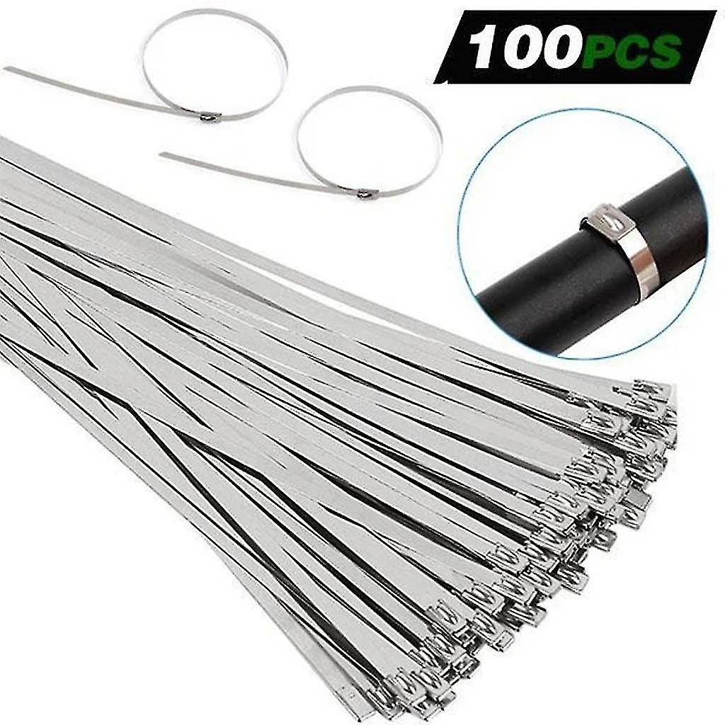 100pcs 304 Stainless Steel Exhaust Wrap Coated Metal Locking Cable Zip Ties