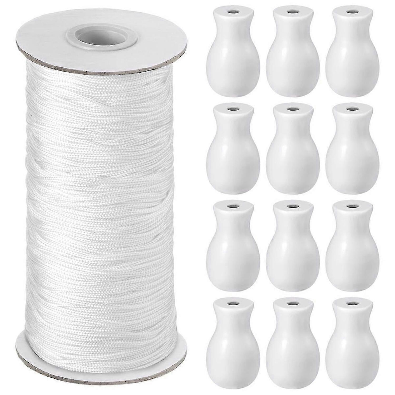 109.36 Yards Roman Blind Cord Raided Lift Shade Cord and 12 Pieces Wood Blind Pull Cord Knobs for DI