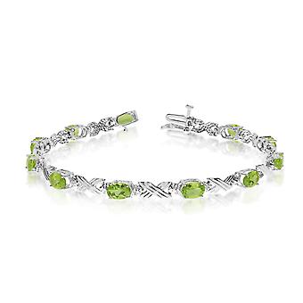 10K الذهب الأبيض البيضاوي الزبرجد الأحجار والماس سوار التنس، 7 "