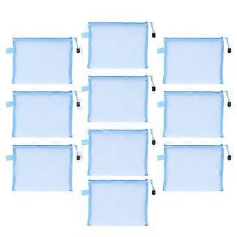 10PCS Zipper Documents Pouch Waterproof Tear Resistant A5 Paper Size Document Organizer Bag Blue