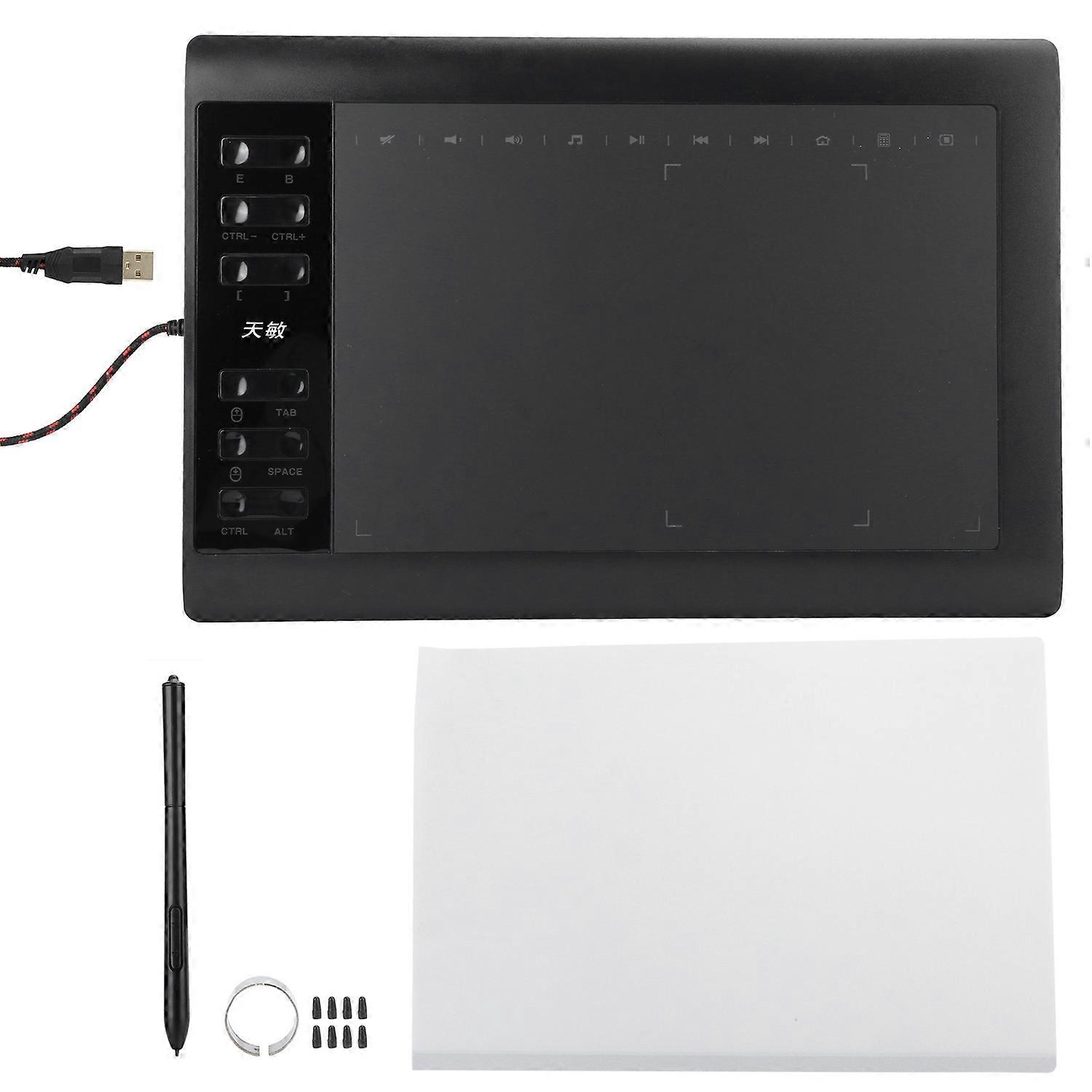 10x6 Inch Graphic Drawing Tablet 8192 Level Digitizing Painting Board No Need Charge Pen