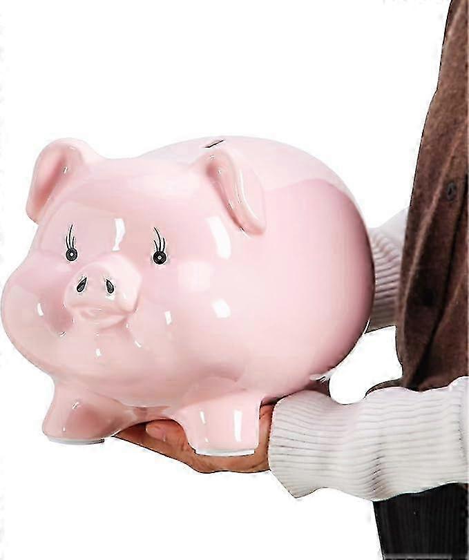 11 Inch Pink Large Adult Piggy Bank, Ceramic Coin Jar, Boys Piggy Bank, Girls Piggy Bank, Child Safe, Savings, Adult Kids Piggy Bank, Money Saving Too