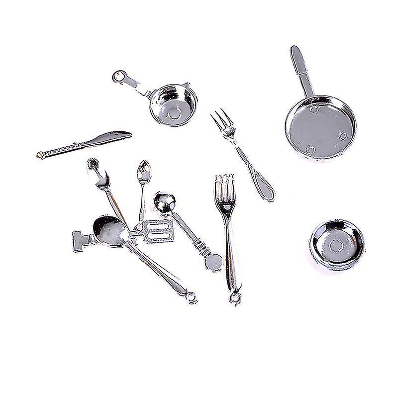 11pcs/set 1/12 Dollhouse Miniature Stainless Steel Dinnerware Set