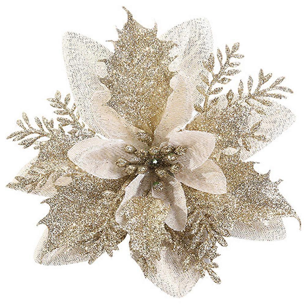 1/10Pcs Christmas Party Glitter Artificial Flower Hanging Ornament Xmas Tree Decoration
