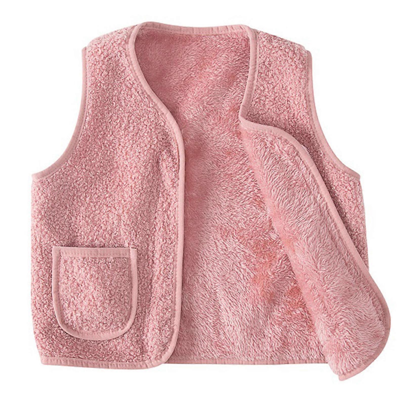 Kid Pink Fleece Vest Boys Girls Autumn Winter Soft Warm Zip Up Sleeveless Jacket Outerwear with Pockets 110cm