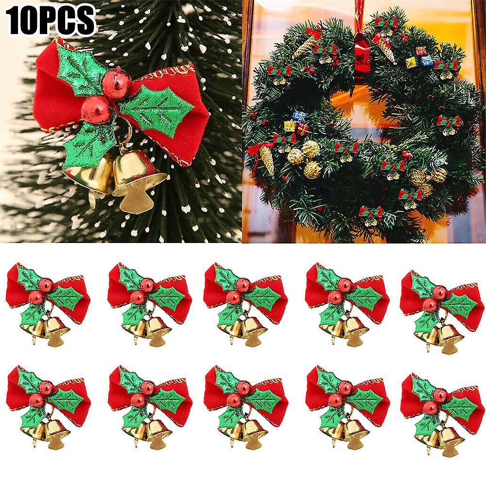 1/10pcs Red Fabric Bows With Bells Decoration Christmas Xmas Tree Party Ornament