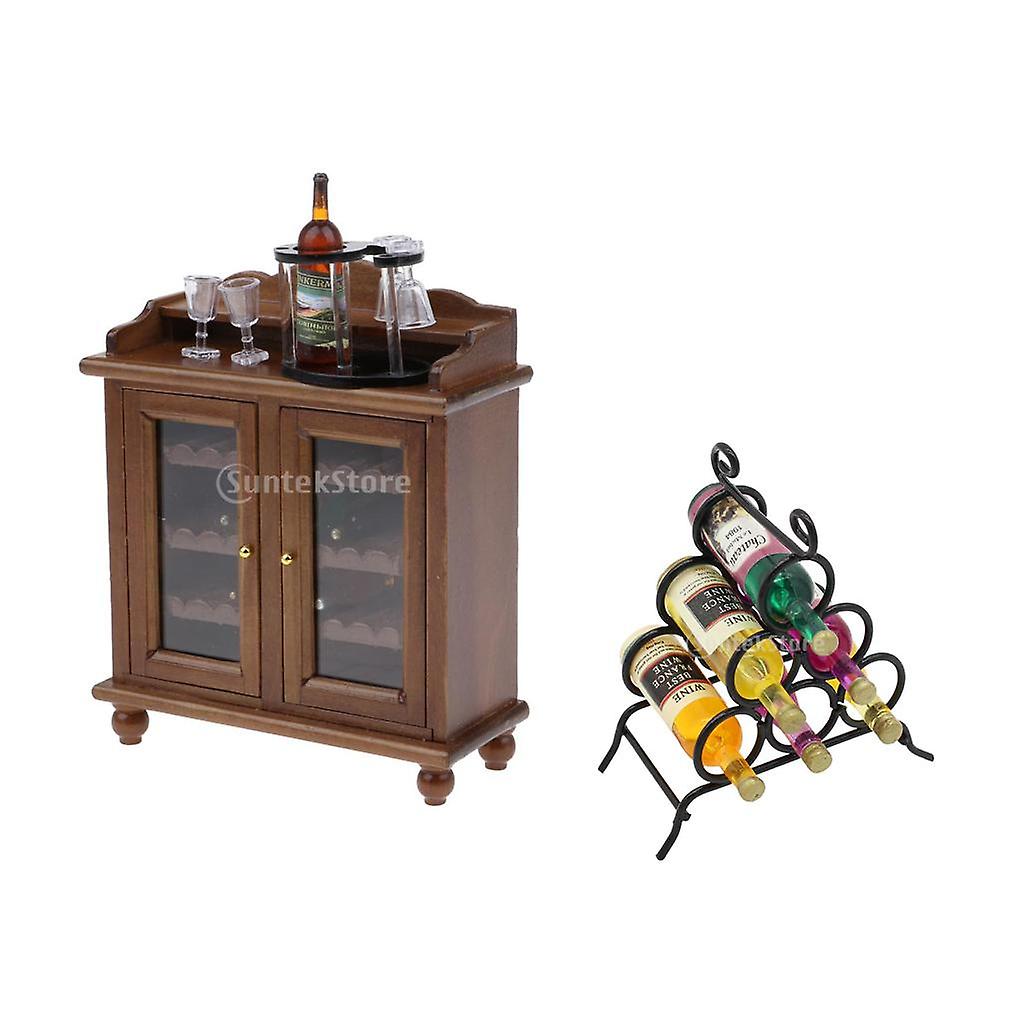 1/12 Dollhouse Miniatures Furniture Wine Cabinet Set & Wine Rack Decoration