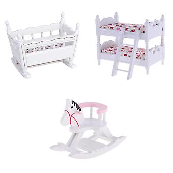 1/12 Dollhouse Miniature Furniture Bunk Bed Cradle Rocking Horse Set Bedroom