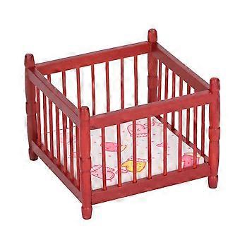 1:12 Dollhouse Mini Crib Simulation Round Corner Crib Bedroom Model with Mattress for Kids
