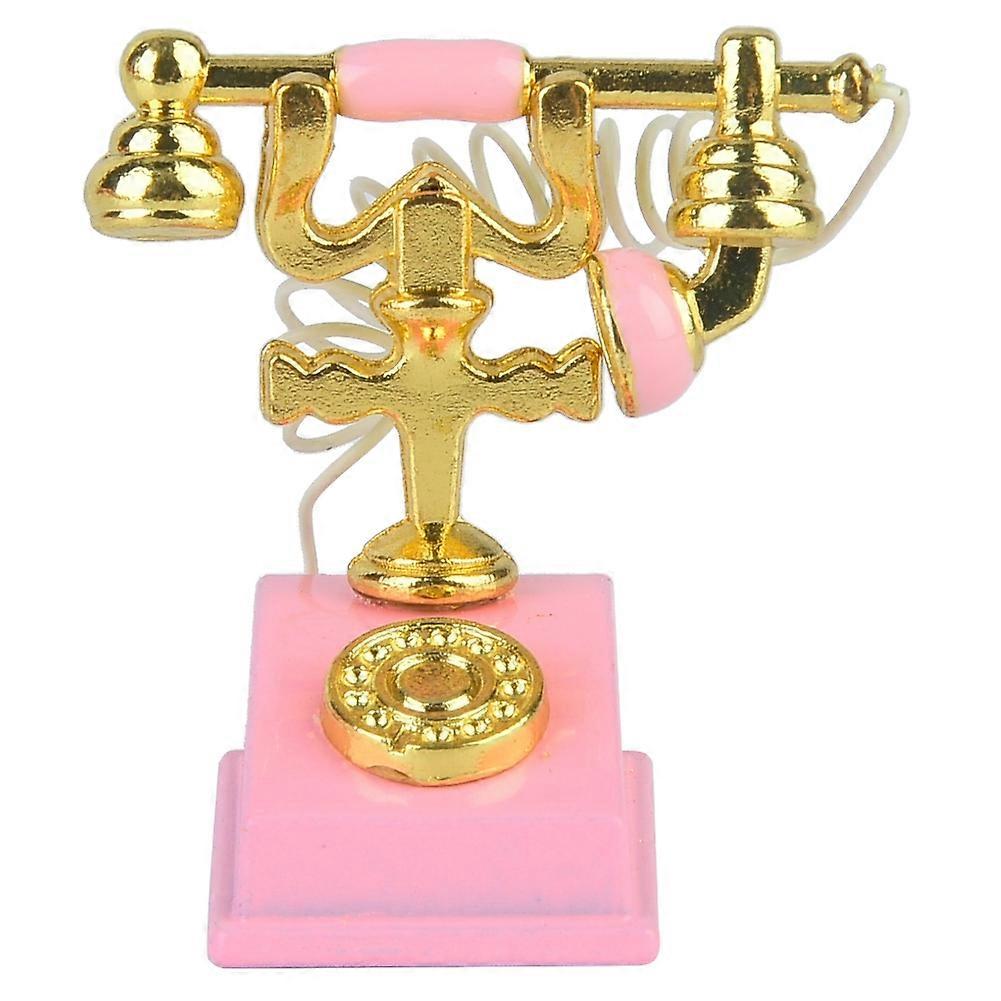 Vintage 1:12 Miniature Telephone Doll House Accessory Room Furniture Toy (Pink)